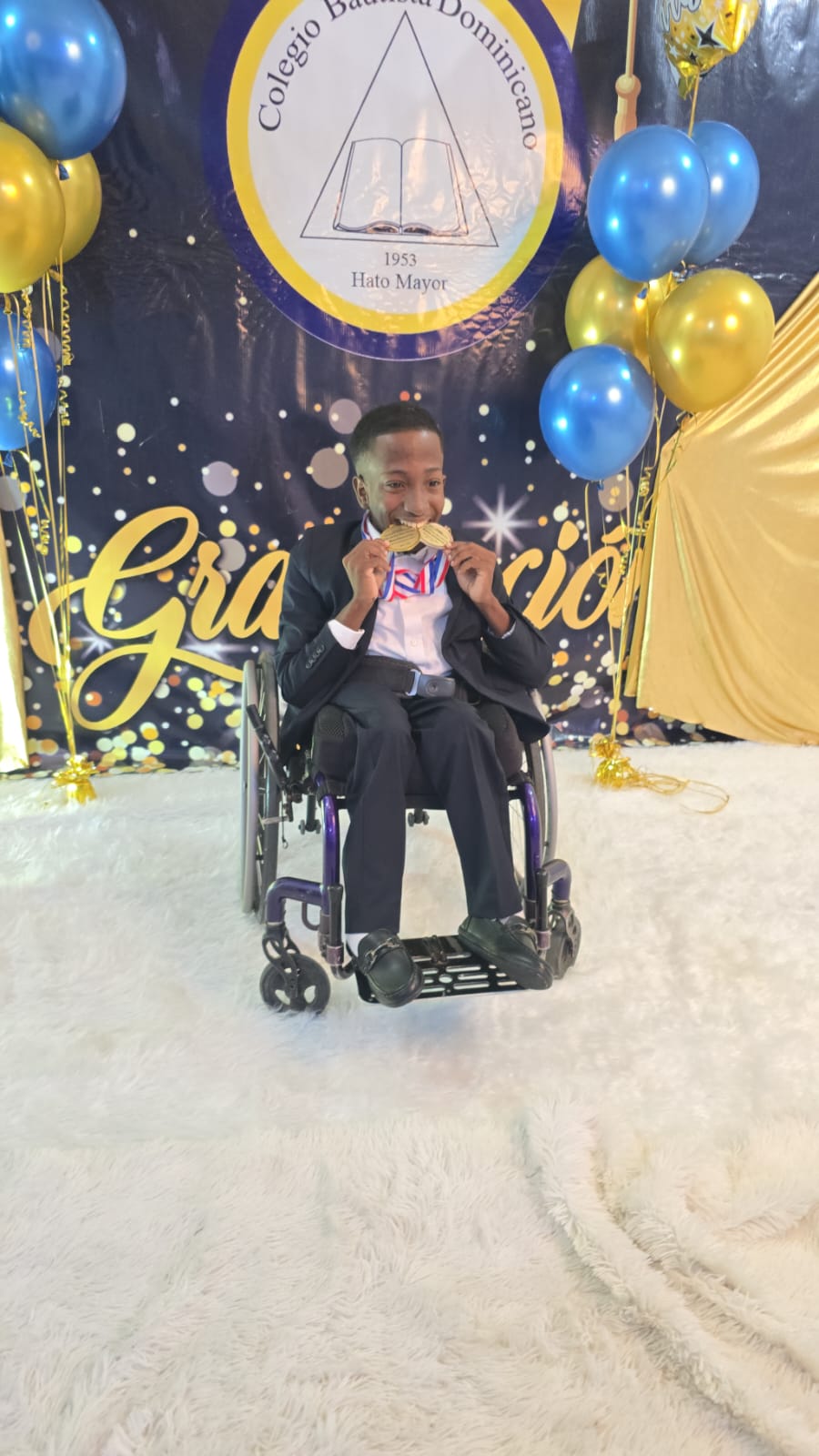 No obstante, esta enfermedad no ha sido un impedimento para él, como lo demostró el pasado martes al graduarse de bachillerato en la promoción de sexto de secundaria del Colegio Bautista Dominicano, en Hato Mayor.